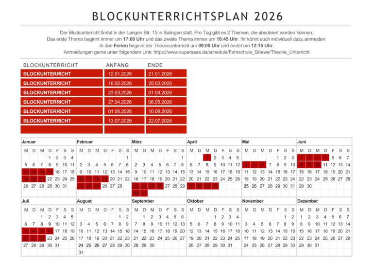 Unterrichtstermine